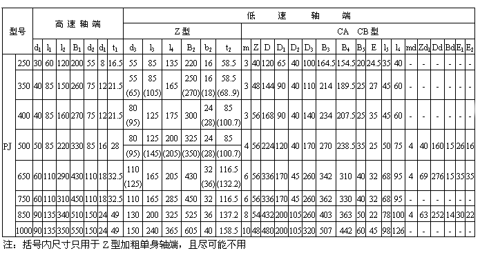 PJ250、PJ350、PJ400、PJ500、PJ650、PJ750、PJ850、PJ1000輸入輸出軸端尺寸