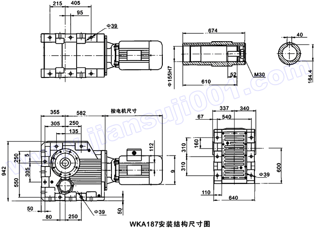 WK系列弧齒錐齒輪硬齒面減速機安裝尺寸(WK167-WK187)