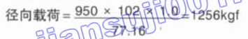 查表1-7,TCJ250機(jī)座,輸出轉(zhuǎn)速為100r/min時(shí),允許的最大徑向載荷 為1736Kgf,校核后獲得通過(guò),所選用減速機(jī)型號(hào)為T(mén)CJYEJ250-100S、B3安裝。