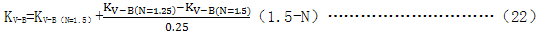 在本區(qū)域中,動(dòng)載系數(shù)在N=1.25的KV-B與N=1.5的KV-B之間用線(xiàn)插值法確定。KV-B按7.7.3.4與7.7.3.5計(jì)算。