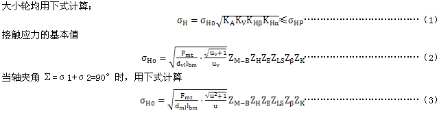 ——接觸應(yīng)力,根據(jù)齒輪的幾何尺寸,制造精度,輪緣、軸承和軸承座的剛性,傳遞的轉(zhuǎn)矩,用接觸應(yīng)力公式(見(jiàn)6.2.1)進(jìn)行計(jì)算。