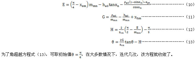 為了計算齒根危險截面弦齒厚SFn和彎曲力臂hFa,首先要確定輔助值E、G、H和θ: