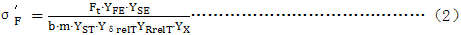 注:公式(1)和(2)計(jì)算的齒根彎曲應(yīng)力已將試驗(yàn)條件及試驗(yàn)齒輪轉(zhuǎn)換成GB3480所要求的標(biāo)準(zhǔn)狀態(tài)。
