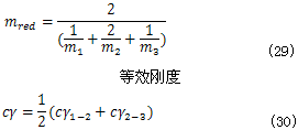 對于行星傳動和其他較特殊的齒輪,如小齒輪的平均直徑接近其軸徑,兩剛性聯(lián)接的同軸齒輪,兩個小輪驅(qū)動一個大輪等,其誘導(dǎo)質(zhì)量可分別按表3和表4的分式近似計算。
