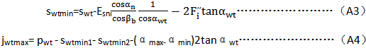 最大的理論側(cè)隙也可發(fā)生于當(dāng)兩個(gè)齒輪都按最小實(shí)效齒厚swtmin制成,且運(yùn)行于最松中心距條件下碰在一起時(shí)。在實(shí)踐中,那種情況不大可能發(fā)生。