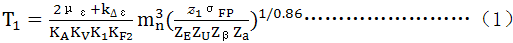 式(B2)與正文的公式(8)等效,其符號意義及取值同公式(8)。σHP及YF分別按大、小齒輪確定,σHP1/YF1和σHP2/YF2值,取其中的小值代入式(B2)。對于人字齒輪,(2με+k△ε)按單側(cè)齒寬計,算得的T1值為單側(cè)齒寬的名義轉(zhuǎn)矩。