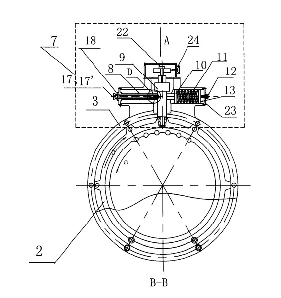 一種擺線針輪減速機(jī),包括針齒殼,前機(jī)殼,輸出軸,輸入軸,后機(jī)殼。其特征在于:減速機(jī)的針齒殼安裝在后機(jī)殼內(nèi),前后機(jī)殼固定連接,針齒殼可以以輸入軸為中心在后機(jī)殼內(nèi)轉(zhuǎn)動(dòng);在減速機(jī)本體上設(shè)置一個(gè)機(jī)械扭矩保護(hù)裝置。