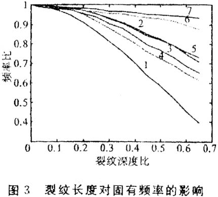 2裂紋深度變化對固有頻率的影響