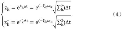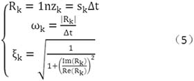 求解得到的根為傳遞函數(shù)的極點(diǎn),他們與系統(tǒng)的模態(tài)頻率ωk和阻尼比的關(guān)系為: