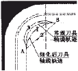圖9 附加走刀路徑細化示意圖 采用圓角處刀具路徑細化方案,可以有效的保持穩(wěn)定切削,減小因切削力突變而引起的加工變形和可能發(fā)生的切削振動,提高了零件的加工質量。 當然,在圓角切削力實驗中,我們還發(fā)現(xiàn),逆銑時切屑厚度是由薄到厚,由于刃口尺寸效應,在刀刃剛接觸工件時,后刀面與工件之間的摩擦較大,易于引起振動,拐角處會出現(xiàn)嚴重的斜向振紋。順銑則剛好相反,雖然順銑的切削力稍大于逆銑時的切削力,但是在切削拐角處時,不會產生明顯的振紋。不過順銑時切屑厚度是由厚到薄,對工件和刀具的沖擊力較大,在加工時盡可能減少刀具的懸伸長度和增加工件的剛性。 4 其它高效銑削加工技術 進給量的局部優(yōu)化法與刀具偏擺數(shù)控補償技術作為數(shù)控加工前期的工藝優(yōu)化和質量保證研究,分別從抑制加工變形和有效補償加工變形的思想出發(fā),二者均應用了有限元技術來建立零件的加工變形模型,并分析處理加工過程中的加工變形狀況。 進給量的局部優(yōu)化方法是針對恒定進給量提出的。因為零件某一表面上各部分的剛性及切削力的大 小不同, 受力變形情況也不一樣。利用有限元分析軟件進行分析后得到變形分布圖, 可以看到有些位置的變形大, 有些位置的變形小。如果采用恒定的進給量, 為了保證變形量最大的位置能達到質量要求,整個表面就得全部采用很小的進給量, 而進給量的局部優(yōu)化就是在變形小的地方采用大進給量,而在變形大的地方采用小的進給量。這樣可以在保證變形量的同時, 提高效率, 減少成本。實驗研究表明, 采用該方法在提高加工質量的同時可以節(jié)省約60%的加工時間。 刀具偏擺數(shù)控補償技術,是在有限元分析基礎上, 根據(jù)模擬仿真加工變形的大小,在數(shù)控編程時讓刀具在原有走刀軌跡中按變形情況附加補償運動,補償因切削力作用而產生的變形。對側壁加工,通過偏擺刀具進行補償;對腹板加工,則補償軸向切深。通過數(shù)控補償, 可以將因變形而產生的殘余材料切除, 一次走刀即可保證薄壁件側壁或腹板精度,從而達到高效、經濟、優(yōu)質加工薄壁零件的目的。 5 結論 以上介紹和分析了當今國內外有關薄壁結構的高效銑削加工技術研究狀況。目前,國內外對于薄壁結構的加工變形研究主要在靜態(tài)分析方面,而對于薄壁結構的加工變形研究的動態(tài)分析還不成熟。當然,對于薄壁結構的高效銑削加工技術研究,可以從機床、夾具、刀具、工件以及切削參數(shù)與走刀路徑等不同方面進行優(yōu)化分析。 隨著高速切削技術與有限元技術的進一步發(fā)展與完善,數(shù)控加工前期的工藝優(yōu)化和質量保證研究工作日顯突出。利用理論分析和實驗相結合建立工件變形模型;通過模擬分析替代大量的實驗研究工作來優(yōu)化切削參數(shù)與走刀路徑;根據(jù)批量生產的實際需要研究、開發(fā)新型刀具、夾具,努力提高機床的性能。薄壁結構的高效銑削加工技術定會得到較大的發(fā)展,薄壁結構的應用會更加廣泛。