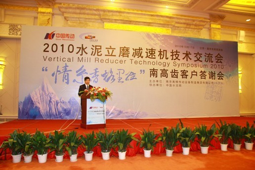 大會由陳永道副總經(jīng)理致歡迎詞,他首先代表南高齒的全體員工對各位代表的光臨表示熱烈歡迎,向參加此次會議的各企業(yè)領(lǐng)導(dǎo)、專家、代表長期以來對南高齒的支持、幫助、關(guān)心表示衷心的感謝。近年來,通過全體員工的不懈努力,南高齒取得了長足的進(jìn)步。2010年市場開拓取得了新的成績,在風(fēng)力發(fā)電、建材、冶金、船舶、機車、石油化工等領(lǐng)域市場占有率不斷提高,其中風(fēng)力發(fā)電今年將成為世界第一位齒輪箱銷售公司,我們通過不斷的技術(shù)創(chuàng)新,逐步縮小了傳統(tǒng)領(lǐng)域齒輪箱技術(shù)與世界先進(jìn)技術(shù)的差距,在產(chǎn)品、技術(shù)、管理等多方面與國際接軌,走國際化發(fā)展的道路。南高齒品牌深受廣大用戶的信賴和認(rèn)可。以建材行業(yè)為例,南高齒創(chuàng)造了五個第一:我們是國內(nèi)第一家采用1+1結(jié)構(gòu)的大型立磨減速機的廠家,解決了大型螺傘齒輪巨大瓶頸問題;我們是國內(nèi)第一家采取功率雙分流的大型立磨減速機的廠家,已為市場提供20多臺套,最大功率5400kw出口印度,成功率100%;我們是國內(nèi)第一家為市場提供雙行星大型立磨減速機的廠家,產(chǎn)品最大功率3600kw;我們是國內(nèi)第一家為市場成功提供行星結(jié)構(gòu)中心傳動磨機減速機的廠家,目前產(chǎn)品最大功率2000kw;我們是國內(nèi)第一家提供最大功率4800kw中心傳動磨機減速機的生產(chǎn)廠家。這些成績的取得與廣大客戶的支持是分不開的,正是由于他們的支持、幫助和理解才有南高齒今天的發(fā)展。他表示南高齒將一如既往地以為客戶提供國際一流產(chǎn)品為己任,用我們的真誠和信譽回報廣大客戶,與廣大客戶攜手為中國建材工業(yè)貢獻(xiàn)更大力量。