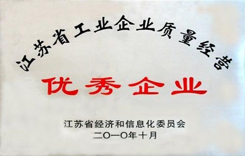 江蘇省工業(yè)企業(yè)質(zhì)量經(jīng)營優(yōu)秀企業(yè)是由省工業(yè)經(jīng)濟管理部門設(shè)立的質(zhì)量工作集體獎項,是為表彰在省工業(yè)產(chǎn)品質(zhì)量工作中做出了突出貢獻,且產(chǎn)品質(zhì)量穩(wěn)定、質(zhì)量管理水平高、創(chuàng)新能力強、技術(shù)水平高、經(jīng)濟效益好的工業(yè)企業(yè)。獲獎企業(yè)必須在國內(nèi)同行 業(yè)名列前茅,為省行業(yè)排頭兵企業(yè)或省認定企業(yè)技術(shù)中心企業(yè),具有健全的質(zhì)量管理體系、良好的現(xiàn)場管理,并且必須已廣泛開展了質(zhì)量教育、質(zhì)量改進與公關(guān)、QC小組等群眾性質(zhì)量活動。