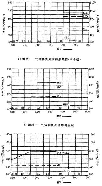 在σHlim和σFlim的圖中,給出了代表材料質(zhì)量等級的三條線,其對應(yīng)的材料處理要求見GB8539。
