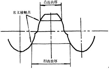 在基本齒廓上,凸齒或凹齒左右齒面上名義接觸點處的齒厚。