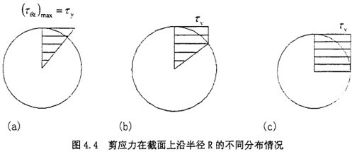 此時剪應(yīng)力在截面上沿半徑R的分布情況見如圖4.4(b)所示。