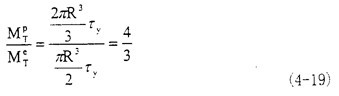 (2)當(dāng)圓軸整個截面都進(jìn)入塑性狀態(tài),如圖4.4(c),此時的扭矩就是圓軸的塑性極限