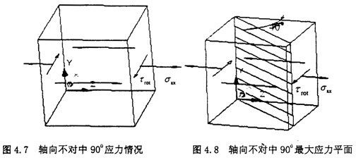 (1)徑向不對中90°位置時,這時由,單元體的應(yīng)力如下圖所示
