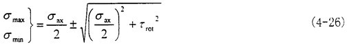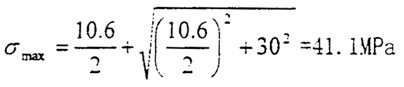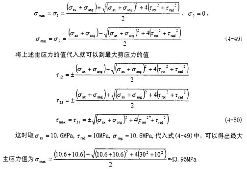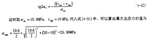 這時取σax=10.6MPa,τrad=10MPa,代入式(4-56)中,可以得出最大主應(yīng)力值為
