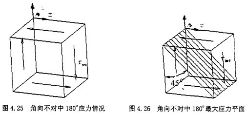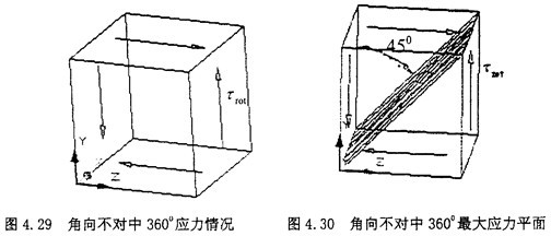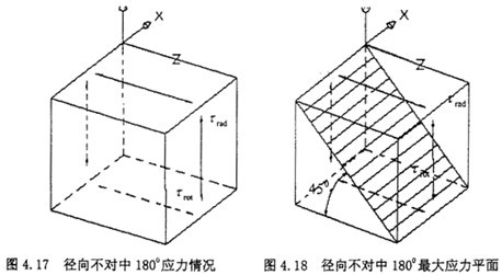 由圖示可知,此時單元體的受力其實(shí)是屬于純剪切狀態(tài),只是此時的剪切應(yīng)力為τrad與τrot的方向相同,而在1800時方向相反,所以有