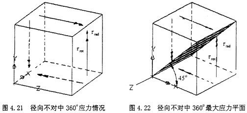 由圖示可知,此時單元體的受力其實(shí)是屬于純剪切狀態(tài),只是此時的剪切應(yīng)力為τrad與τrot的疊加。此時剪應(yīng)力τrad與τrot的方向相反。所在最大應(yīng)力有所抵消。