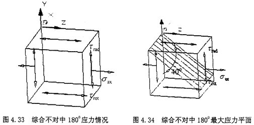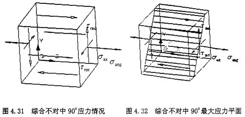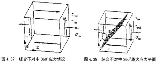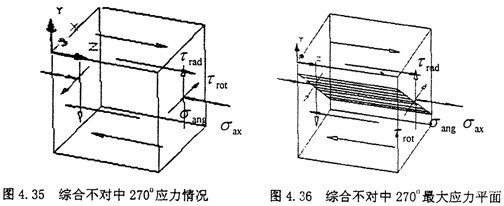 由式(4-39)可知,最大應(yīng)力平面剛好在垂直于正弦矢量相加的方向。這與徑向不對中90°位置的情況有些相似。