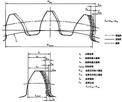 齒厚下偏差是綜合了齒厚上偏差及齒厚公差所獲得的,由于上、下偏差都使齒厚減薄,從齒厚上偏差中應(yīng)減去公差值。