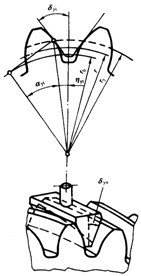 對(duì)于X=0的齒輪,理論齒厚或公稱(chēng)齒厚通常等于分度圓上的齒距的一半。除非有專(zhuān)門(mén)的規(guī)定,一個(gè)未裝配的齒輪其實(shí)際最大齒厚常常比理論值要小,因?yàn)橹圃煺叱3R詼p小齒厚來(lái)實(shí)現(xiàn)側(cè)隙。