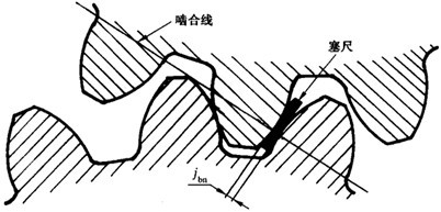 在工作直徑處側(cè)隙的值,可以按下面方法轉(zhuǎn)換成塞尺測(cè)得的側(cè)隙jbn: