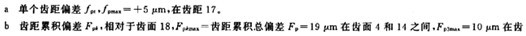 圖25中注明了切向綜合總偏差Fi′,最大一齒切向綜合偏差fi′以及齒廓分量“a”和單個(gè)齒距成分“b”。