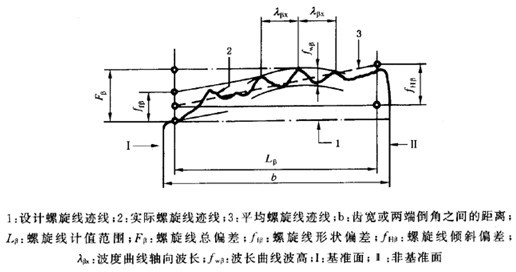 波度是螺旋線形狀偏差,具有不變的波長(zhǎng)和基本不變的高度,切齒機(jī)床傳動(dòng)鏈元件的偏擺是導(dǎo)致出現(xiàn)波度通常的主要原因,特別是: