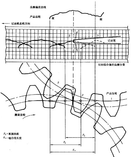 在切向綜合偏差檢測(cè)中,如果所用的測(cè)量齒輪是完全精確的,這就意味著切向綜合偏差圖上所表示的只是產(chǎn)品齒輪的輪齒各要素的偏差的綜合。
