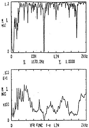為了考察噪聲對所得頻響函數(shù)的影響程度,即檢驗(yàn)試驗(yàn)結(jié)果的可靠程度,可以用相干函數(shù)作判斷。在脈沖激勵(lì)時(shí),一般認(rèn)為其值大于0.75,也就可以了。
