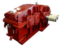 XSK660/550是為開放式煉膠機(簡稱開煉機)配套的主齒輪箱,是高精度重載荷硬齒面齒輪齒輪箱。該主齒輪箱采用平行圓柱齒輪減速的傳動形式。輸入軸通過彈性聯(lián)軸器與電機軸相聯(lián),由電機驅動,經過齒輪減速和兩輸出軸之間齒輪的減速與功率分流,兩輸出軸分別通過聯(lián)軸器把動力傳遞給開煉機轉子軸,帶動開煉機轉子進行煉膠。