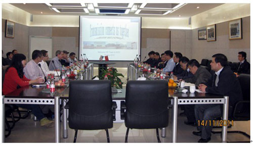 2011年11月14日,GE能源北美區(qū)采購(gòu)總經(jīng)理Robert veideman、GE能源亞太區(qū)采購(gòu)總經(jīng)理Gary Gu等一行15人來到了南京高精傳動(dòng)設(shè)備制造集團(tuán)有限公司(以下簡(jiǎn)稱:南高齒或NGC)風(fēng)電傳動(dòng)設(shè)備生產(chǎn)基地南京高速齒輪制造有限公司(以下簡(jiǎn)稱:高速公司)。南高齒董事長(zhǎng)兼總經(jīng)理胡曰明先生、高速公司總經(jīng)理劉建國(guó)先生等NGC領(lǐng)導(dǎo)層接待了GE一行。