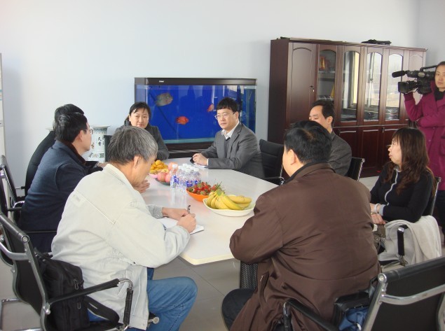 吳橋縣縣長韓祝強(qiáng)和志遠(yuǎn)減速機(jī)有限公司劉占坤總經(jīng)理在座談會(huì)上