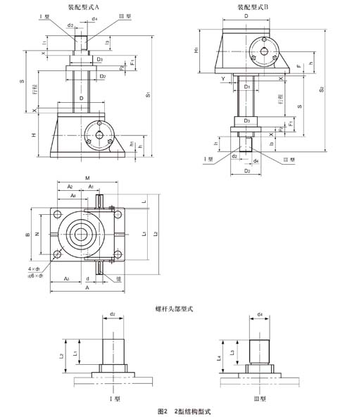 2型結構型式的絲桿頭部分為Ⅰ型(圓柱型)、Ⅲ型(螺紋型)兩種型式。