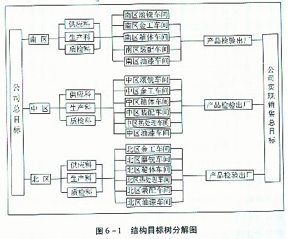 首先,通過(guò)科學(xué)的設(shè)計(jì)和規(guī)劃,依據(jù)企業(yè)上一年度所創(chuàng)造的利潤(rùn)產(chǎn)值為基礎(chǔ),結(jié)合市場(chǎng)實(shí)情,確定可行的、實(shí)用的、科學(xué)的目標(biāo)。再將企業(yè)年度總目標(biāo)分解為三個(gè)廠區(qū)(不同部門)承擔(dān)的子目標(biāo);其次,子目標(biāo)細(xì)化層層落實(shí)到每個(gè)科室、車間。目標(biāo)制定中還要根據(jù)歷年的經(jīng)驗(yàn),以不同的部門、不同類型的工作不斷地修正和完善,以使目標(biāo)更科學(xué)、有效。其中,確定企業(yè)總目標(biāo)及各部門目標(biāo)的下限是結(jié)構(gòu)化目標(biāo)的基礎(chǔ),將目標(biāo)細(xì)化到各基層單位是關(guān)鍵,根據(jù)實(shí)情不斷調(diào)整、完善目標(biāo)是實(shí)現(xiàn)下一個(gè)目標(biāo)管理的保證。