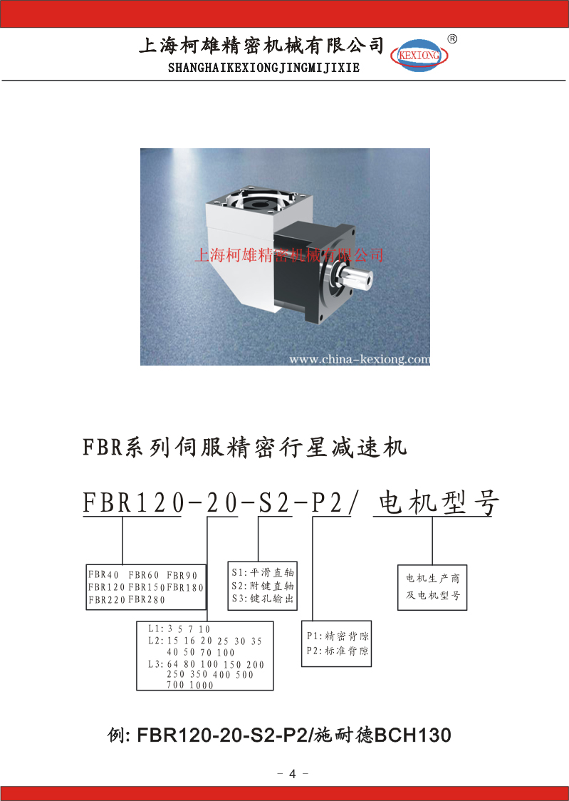 FBR系列伺服直角行星減速器分: FBR40、FBR60、FBR90、FBR120、FBR150、FBR180、FBR220、FBR280、同軸式機(jī)座型號,速比:1-1000有20多個比速可選擇;分一、二、三級減速傳動;精度:一級傳動精度在4-6弧分,二級傳動精度在6-8弧分,三級傳動精度7-10弧分;等一千多種規(guī)格。