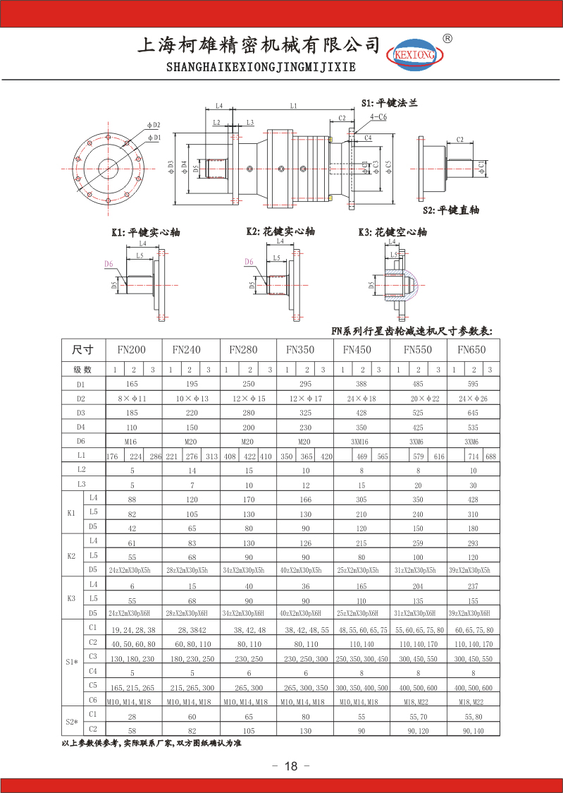 7、FN行星齒輪減速機(jī)產(chǎn)品有12種機(jī)型,速比為1:3-1:10000,傳動級數(shù)分1-4級。