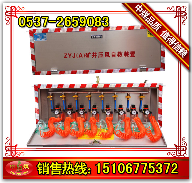 ZYJ(A)礦用壓風(fēng)自救裝置,為隔絕式防護裝置,當煤礦井下出現(xiàn)煤與瓦斯突出預(yù)兆或突出時,避災(zāi)人員應(yīng)立即跑至壓風(fēng)自救裝置處,解開披肩防護袋,打開球閥開工,迅速鉆進披肩防護袋,其壓力達0.09Mpa左右,對袋外空氣形成正壓,而袋外有害空氣壓力低,不能進入防護袋,使避災(zāi)人員不致受侵害。披肩防護待材料具有不漏氣、阻燃和抗靜電特點。