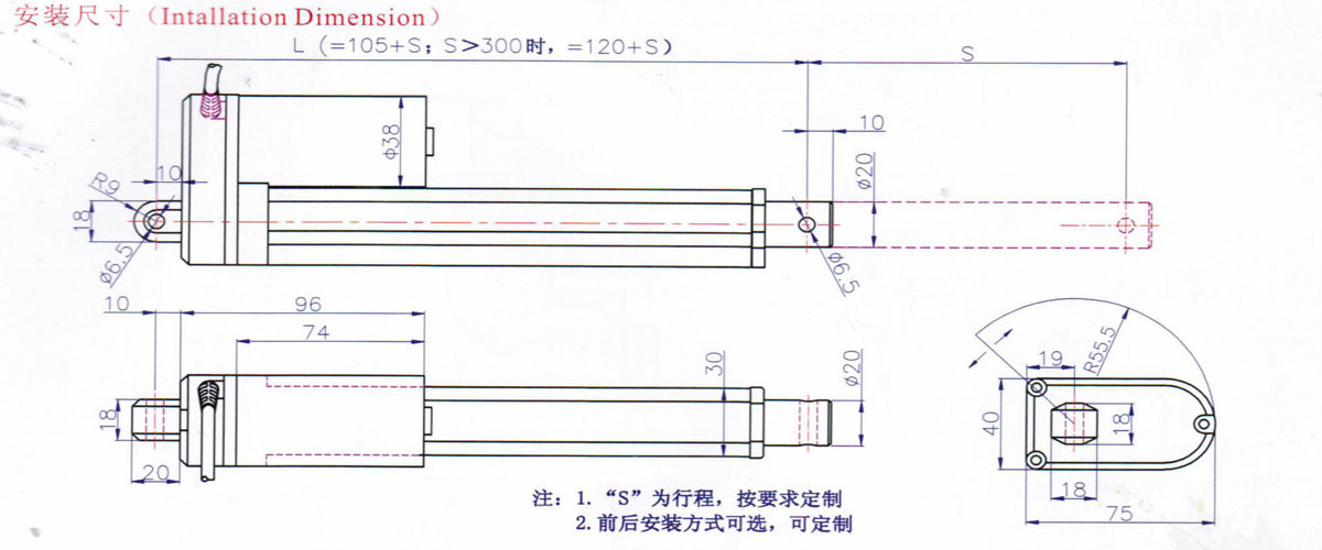 S≤300mm,L=105mm+S