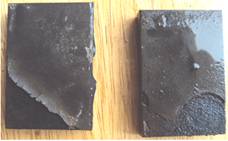 圖1 稀土增強(qiáng)陶瓷涂層2000h腐蝕 圖2 WC30%+Fe陶瓷涂層1500h腐蝕樣品 圖3 CrC陶瓷涂層1500h腐蝕樣品 圖4 4Cr13鋼800h腐蝕樣品 涂層抗變形能力測(cè)試結(jié)果如圖5和圖6所示。實(shí)驗(yàn)采用布氏硬度壓痕法,鋼球直徑10mm,載荷1800N,測(cè)試樣品經(jīng)1500h腐蝕測(cè)試后進(jìn)行壓痕測(cè)試。 圖5 稀土增強(qiáng)陶瓷涂層壓痕樣品 圖6 CrC陶瓷涂層樣品 5 展望 在熱噴涂耐磨涂層,尤其在螺桿泵技術(shù)領(lǐng)域的涂層采用真空浸滲技術(shù)封堵涂層缺陷的報(bào)道還鮮有報(bào)道,且未見(jiàn)成果應(yīng)用。開展這一領(lǐng)域研究,在國(guó)內(nèi)具有一定的技術(shù)先進(jìn)性,在螺桿泵行業(yè)也有領(lǐng)先技術(shù)的優(yōu)勢(shì)。 寧波鎮(zhèn)海減變速機(jī)公司借助了國(guó)防工業(yè)設(shè)備及技術(shù)的先進(jìn)優(yōu)勢(shì),在噴涂技術(shù)途徑上采用了先進(jìn)的超音速火焰噴涂技術(shù)和等離子噴涂技術(shù),獲得了優(yōu)良的涂層質(zhì)量。涂層防腐技術(shù)途徑采用了真空封堵技術(shù)途徑,有效克服了噴涂涂層的制備缺陷,同時(shí)也有效地提高了涂層的結(jié)構(gòu)強(qiáng)度。 目前,在涂鍍層上應(yīng)用真空浸滲技術(shù)封堵涂鍍層中的缺陷的已有研究,但進(jìn)展較慢,由于受封堵劑的限制,在納米粒子浸滲劑的領(lǐng)域落后國(guó)外。目前兵器行業(yè)某研究所從匈牙利引進(jìn)的真空封堵劑采用了硅酸鹽納米粒子技術(shù),使得鋁、鎂合金微弧氧化層、鋁合金陽(yáng)極化層的封堵獲得良好效果,使得涂層的耐腐蝕性能成倍獲得提高。同時(shí),在涂層與基體界面的處理上,采用了無(wú)裂紋涂鍍層技術(shù),無(wú)晶化鍍層處理,有效提高了基體的抗腐蝕性能,使45鋼基體達(dá)到不銹鋼的耐酸堿腐蝕能力,有效增加了涂層的抗腐蝕性能。