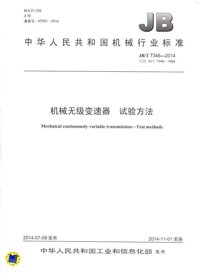 機(jī)械無級(jí)變速器試驗(yàn)方法(JB/T7346-2014)