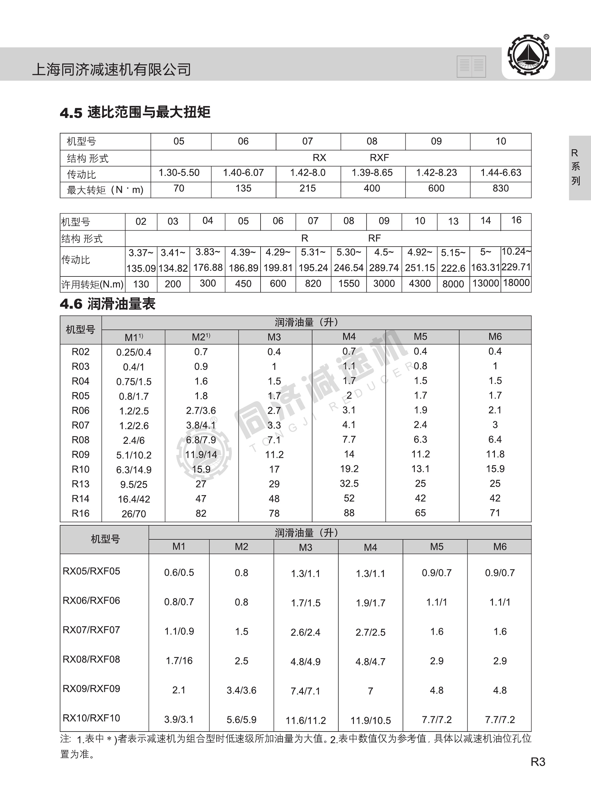 速比范圍:R基本型3.33~289.74,RX型1.3~8.65,R/R組合型可達到27001
