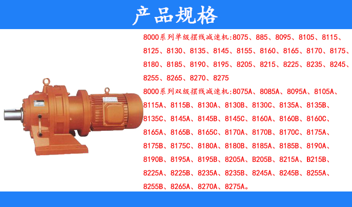8000系列雙級擺線減速機(jī):8075A、8085、8095A、8105A、8115A、8115B、8130A、B130B、8130C、8135A、8135B、8135C、8145A、8145B、8145C、8160A、8160B、8160C、8165A、8165B、8165C、8170A、8170B、8170C、8175A、8175B、8175C、8180A、8180B、8185A、8185B、8190A、8190B、8195A、8195B、8205A、8205B、825A、8215B、8225A、8225B、8235A、8235B、8245A、8245B、8255A、8255B、8265A、8270A、8275A
