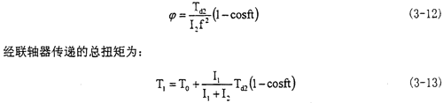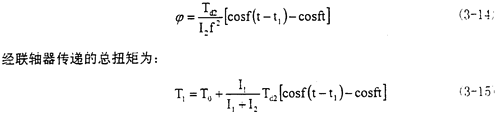 上式的解由兩部分組成,即對應(yīng)的其次方程的通解和本方程的特解。經(jīng)運(yùn)算后可得到聯(lián)軸器所受的諧振扭矩為:
