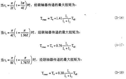由式(3-10)可知,在短時(shí)沖擊載荷作用下,聯(lián)軸器傳遞的最大扭矩隨t1與f之間的關(guān)系而變。例如