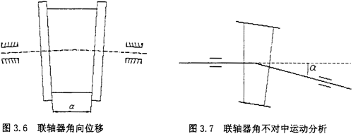 (3)當(dāng)轉(zhuǎn)子軸線之間存在偏角位移時(如圖3.6),從動轉(zhuǎn)子的角速度與主動轉(zhuǎn)子角速度是不同的,從動轉(zhuǎn)子的角速度為