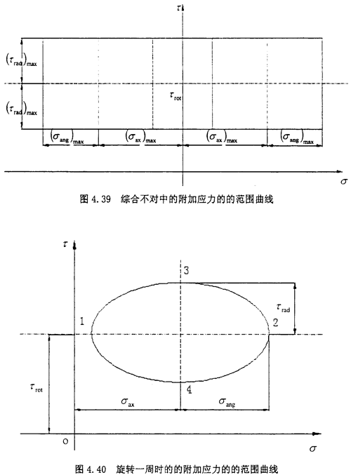 而在聯(lián)軸器旋轉(zhuǎn)一周的過程中,各個不對中量都是定值,此時應(yīng)力范圍在見圖4.40的橢圓。該橢圓的方程為