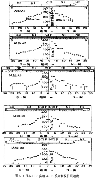 所有實驗的止裂都不是在同一管段內(nèi)部發(fā)生的,任意管段內(nèi)均發(fā)生了減速。尤其是HLP組織的B類實驗:在Bl的兩側(cè),B2的北側(cè),裂紋從CIP起裂后經(jīng)過的兩段管子韌性相差無幾,卻均在第一段中持續(xù)擴(kuò)展而在第二段中止裂。